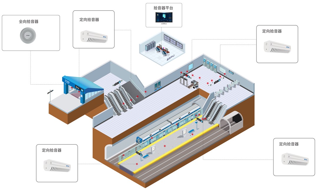 等候區(qū):該區(qū)域是乘車人員最為聚集的地方,也是最容易發(fā)生“乘客之間糾紛、丟東西、聚集討論、司乘人員糾紛”的地方。通過部署定向型拾音器對乘車等候區(qū)位置進行聲音監(jiān)控,為事件發(fā)生原因、聚集討論目的、司乘人員糾紛提供依據(jù)降低后期維護成本,提高工作效率。有效預(yù)防突發(fā)事件,做到事前預(yù)防、事中控制有效、事后處理規(guī)范。