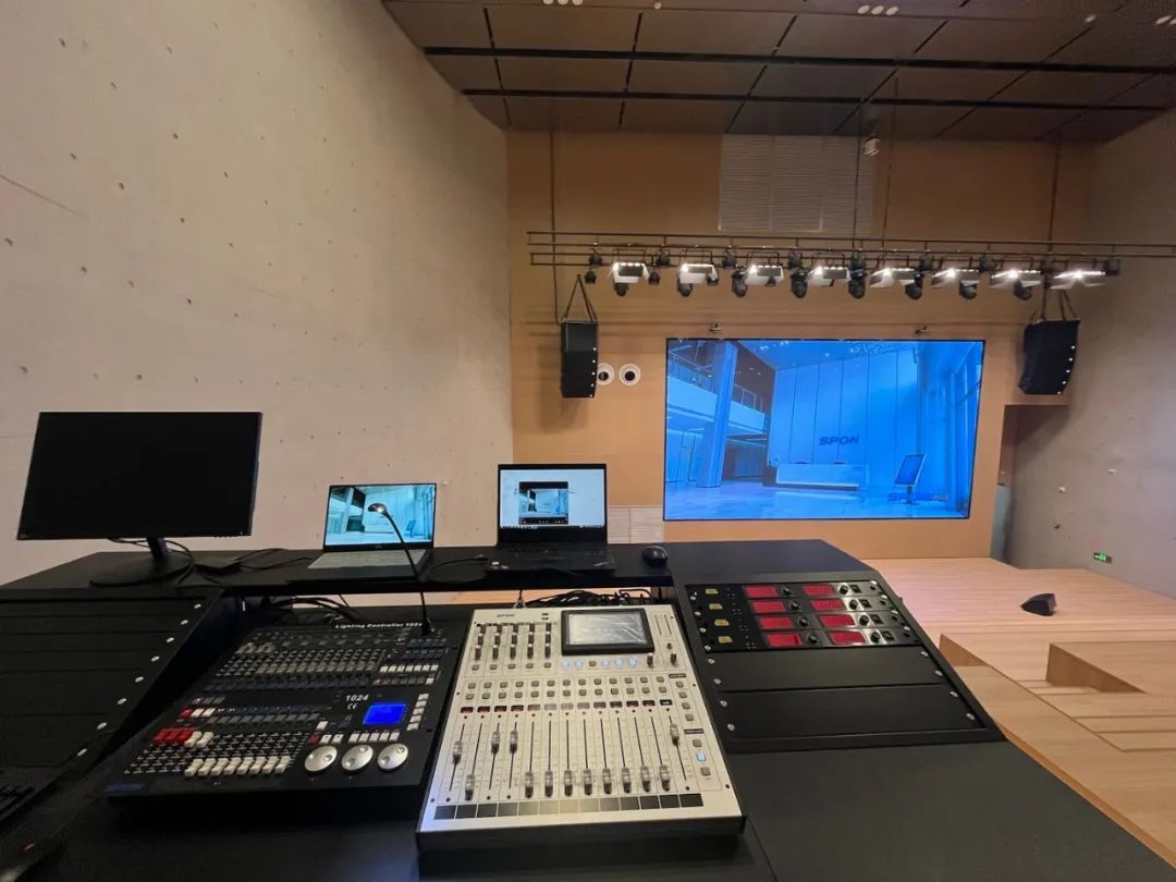 這間階梯教室是智能會(huì)議室典型項(xiàng)目,主要用于產(chǎn)品報(bào)告會(huì)、新聞發(fā)布會(huì)使用,所以既要考慮實(shí)用性,也要兼具美觀效果,舞臺(tái)燈光的特別設(shè)計(jì)能增強(qiáng)舞臺(tái)人物及景物的立體感,烘托舞臺(tái)氛圍,搭配擴(kuò)聲系統(tǒng)實(shí)現(xiàn)以光助聲,聲光配合,讓現(xiàn)場(chǎng)觀眾達(dá)到最佳視聽(tīng)享受。
