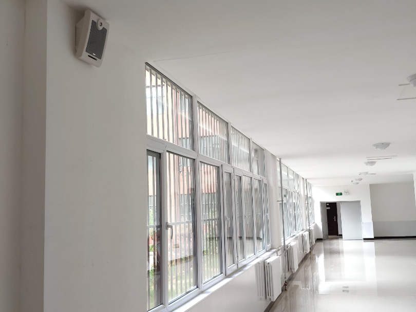 所有樓層走廊共設(shè)為一個(gè)廣播分區(qū),主要滿(mǎn)足上下課打鈴和廣播通知,采用網(wǎng)絡(luò)功放+壁掛音箱的部署方式,如有吊頂可優(yōu)先選擇天花喇叭,安裝效果更加美觀(guān)。壁掛音箱部署間隔約15~20米/只。