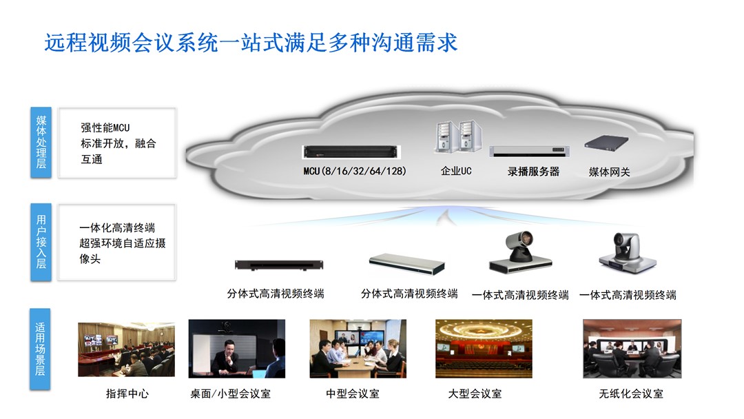 2. 音視頻設(shè)備:包括智能攝像頭、麥克風(fēng)陣列和專(zhuān)業(yè)揚(yáng)聲器,保證遠(yuǎn)程會(huì)議的音視頻質(zhì)量,提供清晰的視聽(tīng)體驗(yàn)。