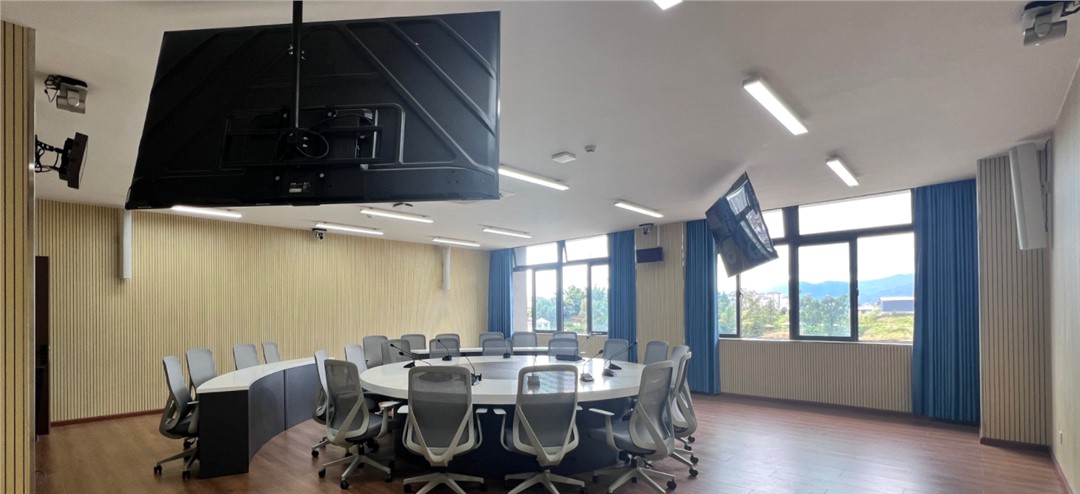 音箱組合: 體積龐大,需要承重極高的專業(yè)吊點和復雜的機械結構。在層高較低(<5米)的會議室中不適合。
