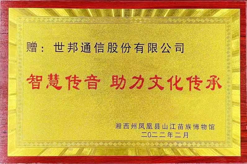 近日,世邦收到了來(lái)自湘西州鳳凰縣山江苗族博物館、湘西州花垣縣抗日革屯博物館送來(lái)的感謝牌匾,感謝世邦為地方博物館的建設(shè)無(wú)償捐贈(zèng)智能廣播安防設(shè)備。通過(guò)世邦“人工智能”安防系統(tǒng)的部署,大力提升了博物館治安防控能力,助力民族文化的傳承與保護(hù)。