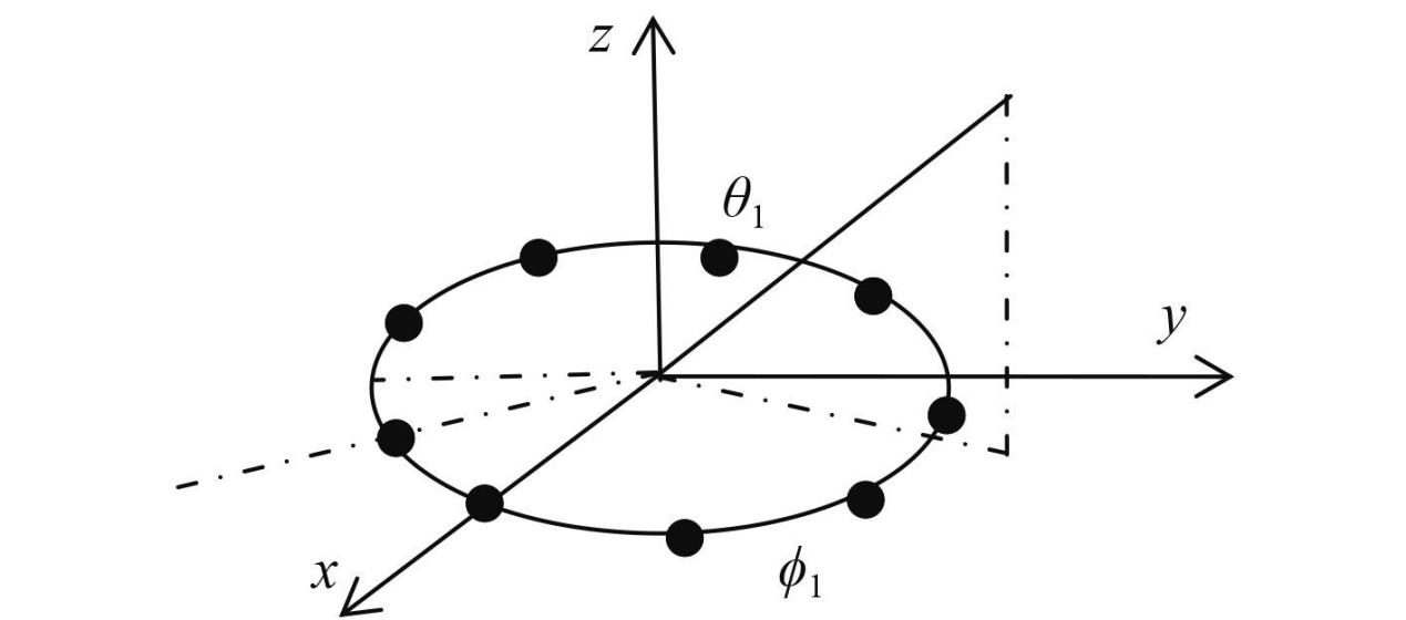 圓形坐標定向示例(θ1---俯仰角,φ1---方位角)