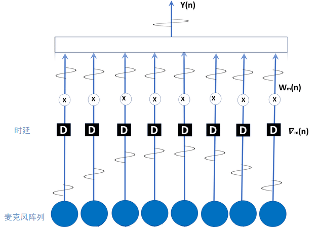 假設(shè)麥克風的數(shù)量為M,第i個麥克風接收到的信號為,對進行時延對齊后,累加可得