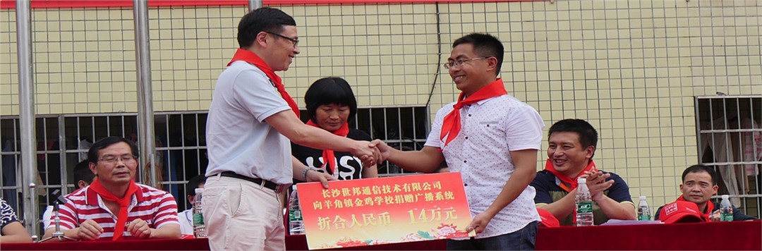 2015年世邦通信向湖南安化縣羊角鎮(zhèn)金雞中學(xué)捐助學(xué)校廣播系統(tǒng)