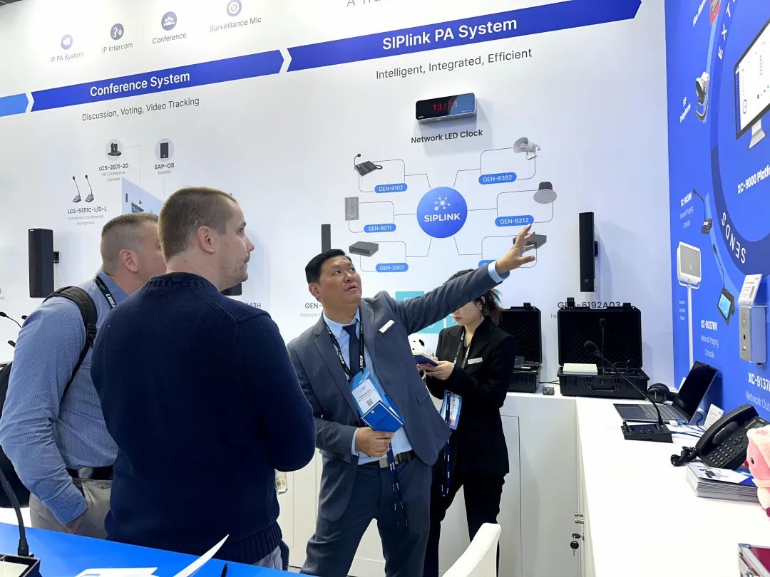世邦通信多年來深耕音頻研發(fā)細(xì)分領(lǐng)域,此次展會(huì),重點(diǎn)展示Mosque Audio System(清真寺廣播系統(tǒng))、Conference System(會(huì)議系統(tǒng))、SIPlink PA System(SIPlink廣播系統(tǒng))、Netlink PA System(Netlink廣播系統(tǒng))等,輕量化系統(tǒng),部署簡(jiǎn)單、擴(kuò)展靈活、穩(wěn)定可靠,適用于教育、金融、寺廟、商貿(mào)、樓宇酒店等需要廣播、對(duì)講和會(huì)議發(fā)言的音頻使用場(chǎng)景。展會(huì)現(xiàn)場(chǎng)體驗(yàn)產(chǎn)品擴(kuò)聲效果和輕量化系統(tǒng)部署,收獲了眾多海外客戶的關(guān)注與認(rèn)可。