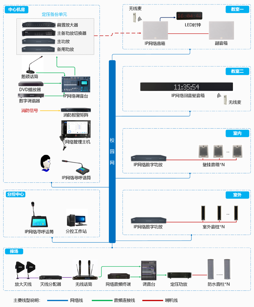 ? 整體設(shè)計實現(xiàn)全校范圍內(nèi)統(tǒng)一集中控制管理,能夠全區(qū)廣播。